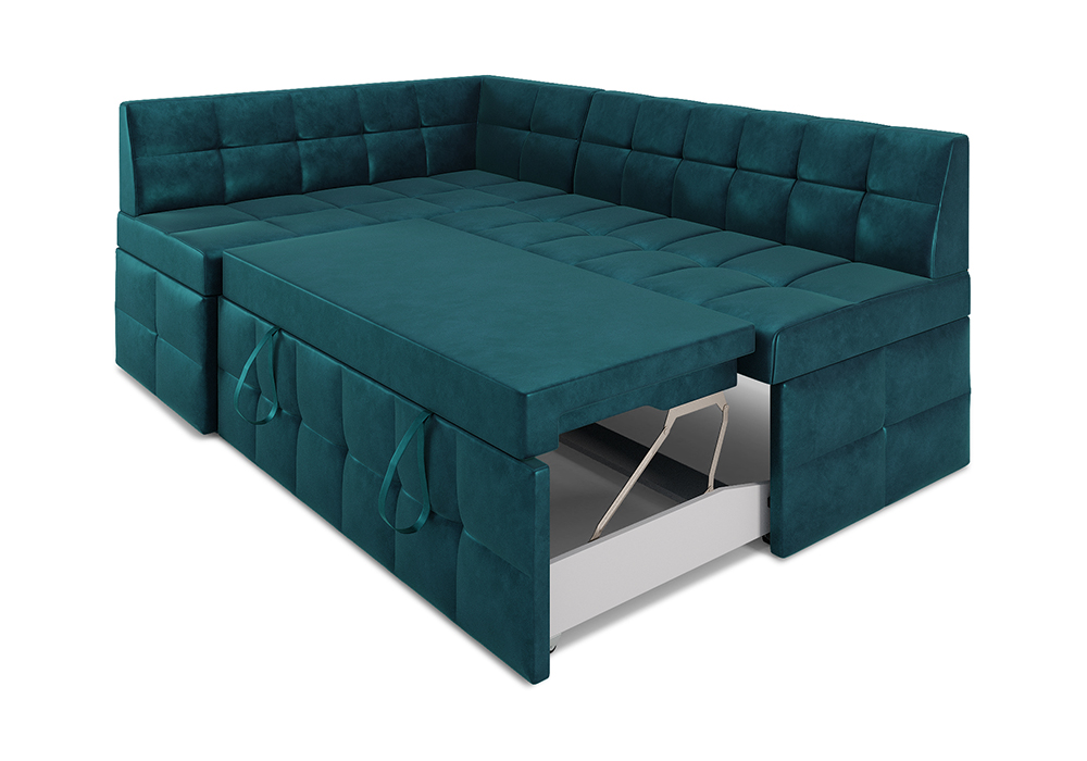 —Кухонный угловой диван дельфин Атлантис вельвет сине-зеленый